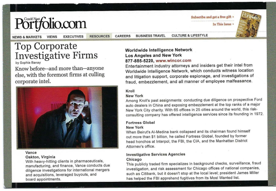 Our Private Investigators are seasoned professionals you can count on. Established over thirty-three years ago, Worldwide Intelligence Network serves all of Los Angeles and Southern California Counties providing a wide range of investigative and personal protection services. We are proud to serve some of the most respected and distinguished law firms in the country. We respectfully invite you to view our Law Fim Accolades-Los Angeles Litigation Support Services